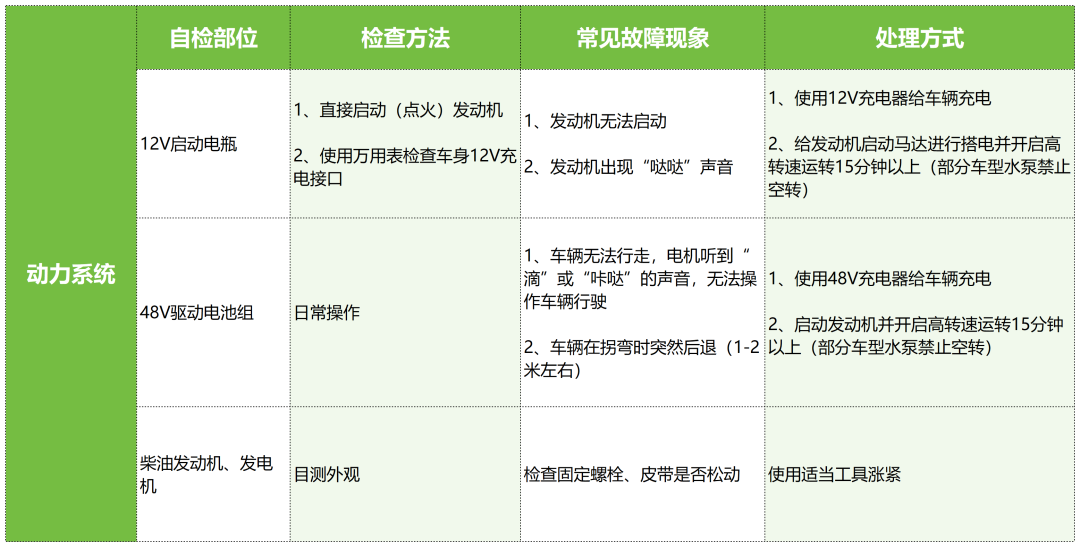 春为岁首,农为先行,眼下春耕备耕正由南向北次第展开。岚江科技果园机器人也全面进入春耕“备战”状态。工欲善其事,必先利其器,为确保设备在正式投入作业时的高效与稳定,开机前的全面检修与维护至关重要。为此,我们特别梳理了一份机器使用前检修指导措施,以及针对常见故障的处理方式,供广大果农参考。