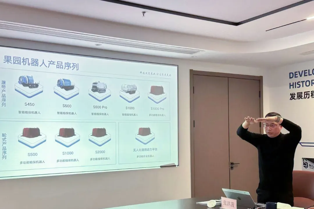 张洪菠从全球农业发展挑战与机遇、国内外农机巨头竞争布局、智能农机发展趋势等宏观视角切入,深刻剖析了产业变革的深层逻辑。汇报核心重点提出了 “岚江:用机器人技术重新定义下一代智能农业” 的战略愿景,并详细勾勒了公司在“十五五”期间的核心产品发展方向与落地应用路径,并进一步结合江苏实际,提出了 “把握产业转型历史机遇,协同推动江苏省农业机器人高质量发展” 的具体思考与建议,将企业自身发展融入全省产业升级的大局之中。