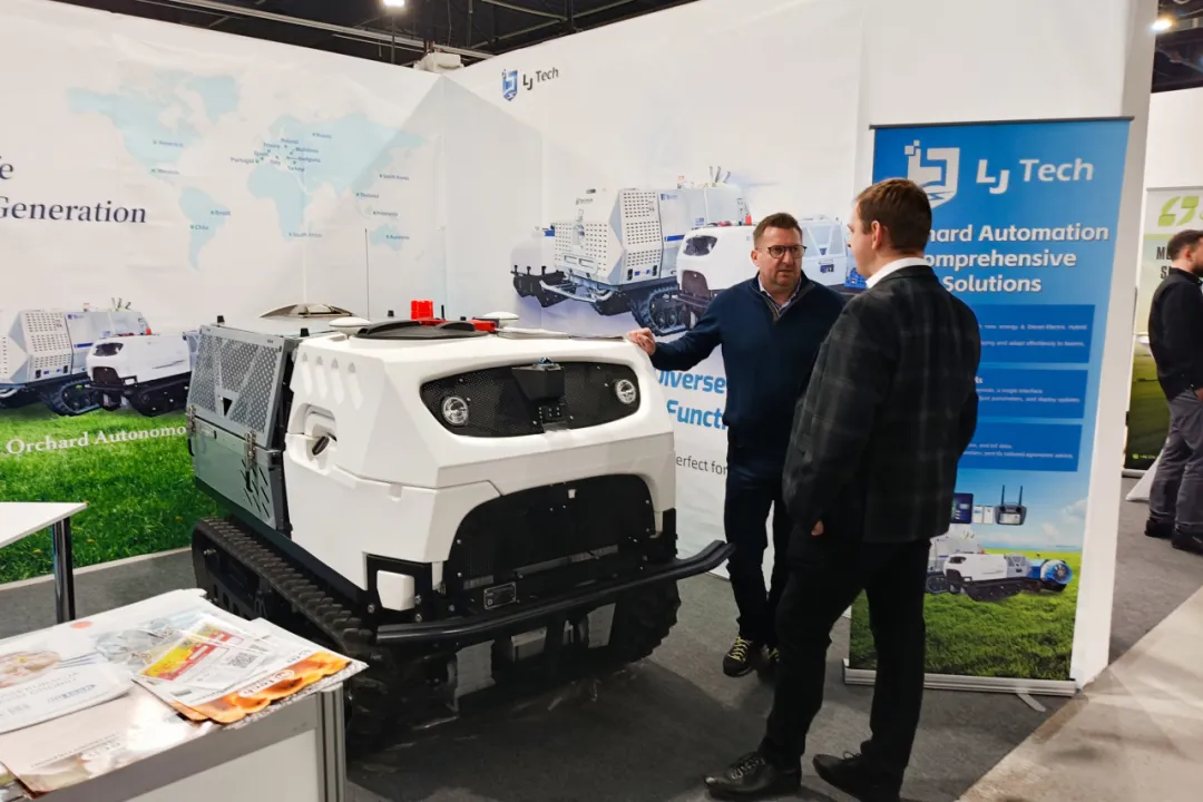 岚江科技应邀携S500Pro果园机器人亮相展会,尽展创新实力,成为展览会备受瞩目的焦点之一。开展首日,现场工作人员陆续接待了来自波兰及周边多个国家和地区的农业设备经销商、行业专家、水果种植大户等。通过技术讲解与互动体验,岚江科技全方位展示了其在智慧果园领域的核心能力与系统化解决方案。