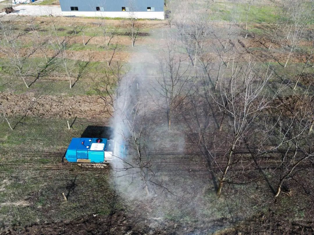 除此之外,果园机器人集成了北斗定位系统与先进的视觉识别算法,能够实时精确定位果树位置与边界,并通过智能路径规划,在行进过程中实现精确到每棵果树的点对点施药。
